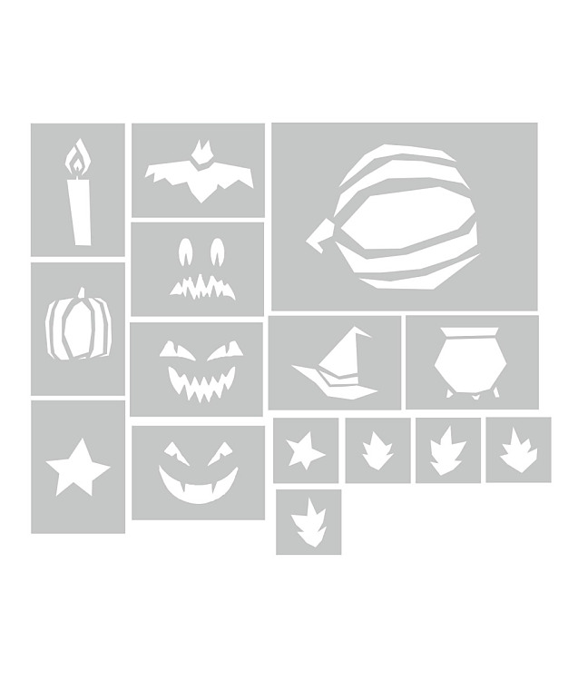 Halloween je jedným z najobľúbenejších sviatkov, ktorý prináša množstvo kreatívnych možností na dekorovanie a zábavu. Sada halloweenskyh šablón obsahuje - netopiere, sviečky, tekvice, staršidelné tváre, klobúk čarodejnice, hviedzy , dokonca aj čarodejnícky kotlík.