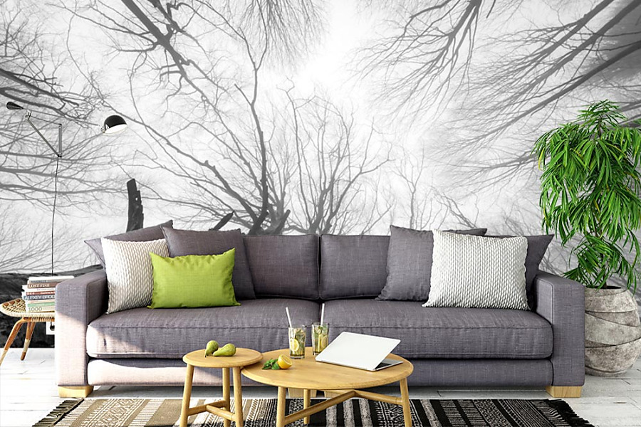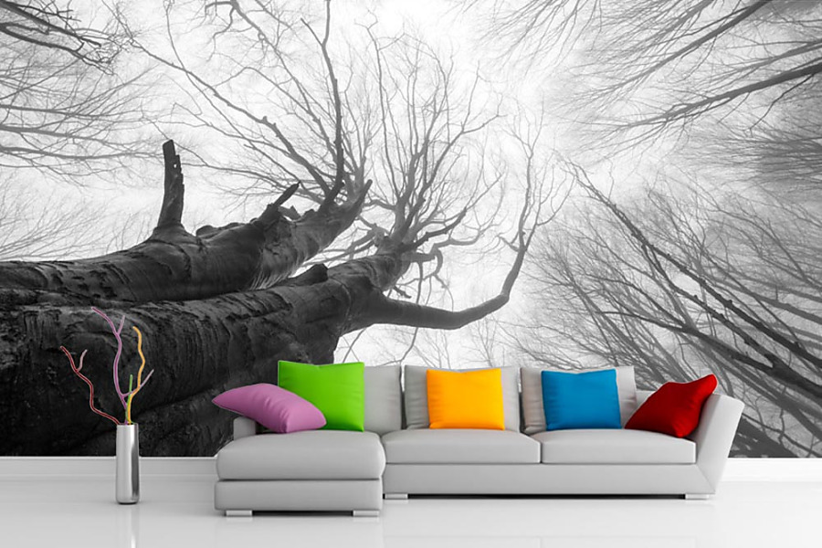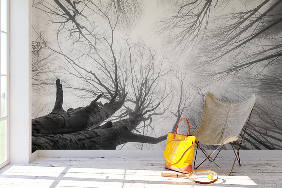 Fototapety českej prírody vliesové na stenu. Krásne vysoké stromy na čiernobielej tapete sú ideálne do interiéru zariadenom v škandinávskom alebo v severskom štýle.