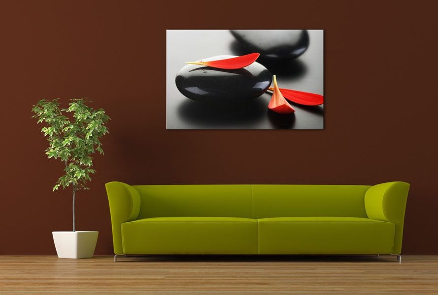 Feng shui Obrazy - Čierne kamene a červené lupienky zs453