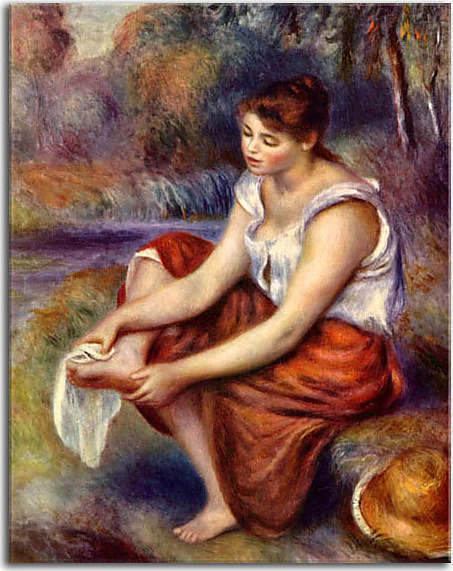 Girl wiping her feet Obraz Renoir zs18074