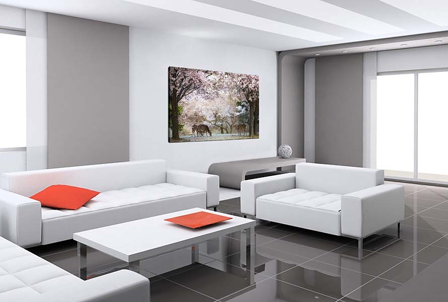 Boky obrazu sú tiež potlačené a preto nie je vidno napínací rám. Obraz nám na stene vyzerá ako 3D obraz.