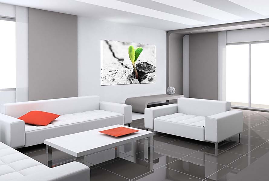 Boky obrazu sú tiež potlačené a preto nie je vidno napínací rám. Obraz nám na stene vyzerá ako 3D obraz.