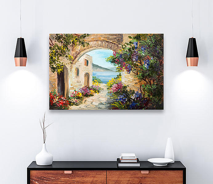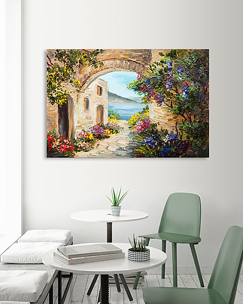 Hľadáte dokonalý obraz na stenu, ktorý prinesie do vášho interiéru kúsok pokojnej prírody a harmónie? Predstavte si nádherný maľovaný domček pri mori, obklopený pestrofarebnými kvetmi, ktorý v sebe spája romantiku vidieka a krásu prírody. Tento jedinečný obraz na stenu zaujme nielen svojou detailnou technikou, ale aj schopnosťou preniesť vás do tichej záhrady v oblasti Provence plnej kvetov, kde šumí more a vonia slnkom prehriaty vzduch.