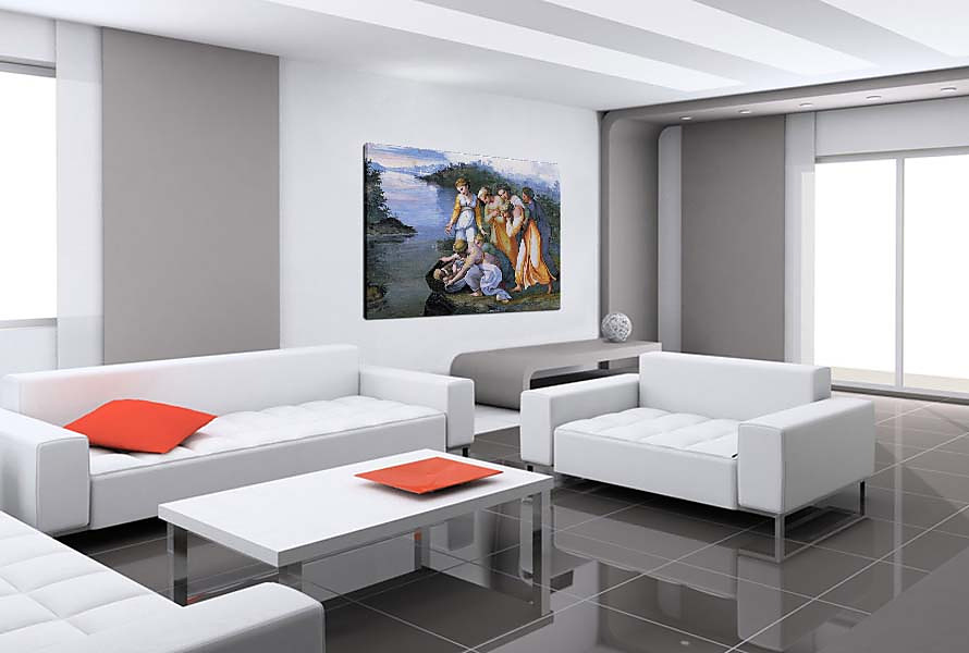 Boky obrazu sú tiež potlačené a preto nie je vidno napínací rám. Obraz nám na stene vyzerá ako 3D obraz.