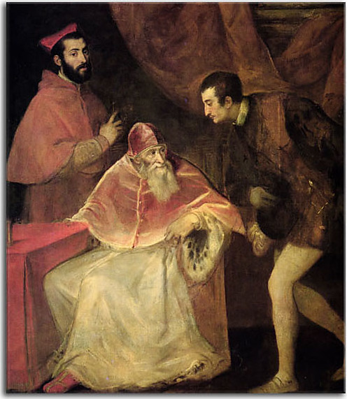 Tizian obraz - Portrait of Pope Paul III, Cardinal Alessandro Farnese and Duke Ottavio Farnese zs18332