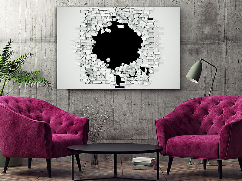 Boky obrazu sú tiež potlačené a preto nie je vidno napínací rám. Obraz nám na stene vyzerá ako 3D obraz.