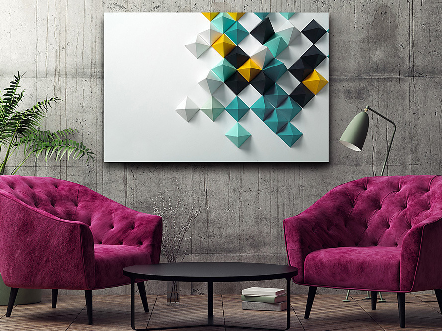 Boky obrazu sú tiež potlačené a preto nie je vidno napínací rám. Obraz nám na stene vyzerá ako 3D obraz.