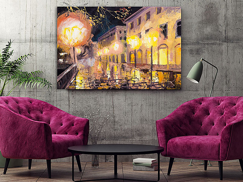 Boky obrazu sú tiež potlačené a preto nie je vidno napínací rám. Obraz nám na stene vyzerá ako 3D obraz.