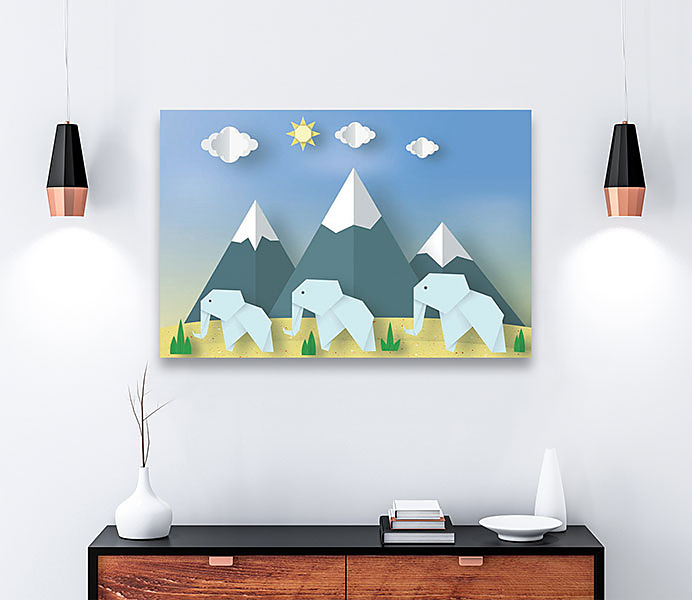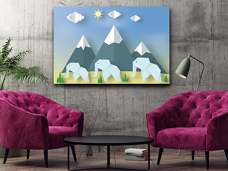 Boky obrazu sú tiež potlačené a preto nie je vidno napínací rám. Obraz nám na stene vyzerá ako 3D obraz.