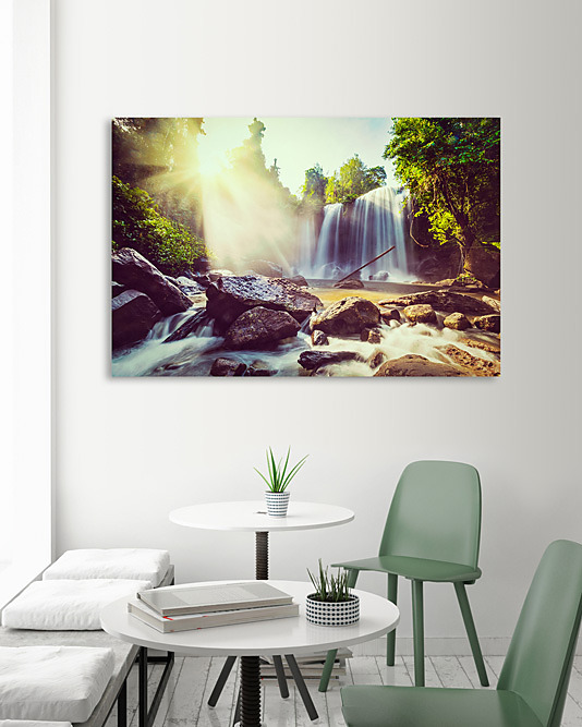 Obraz na stenu Slnko nad vodopádom, waterfall