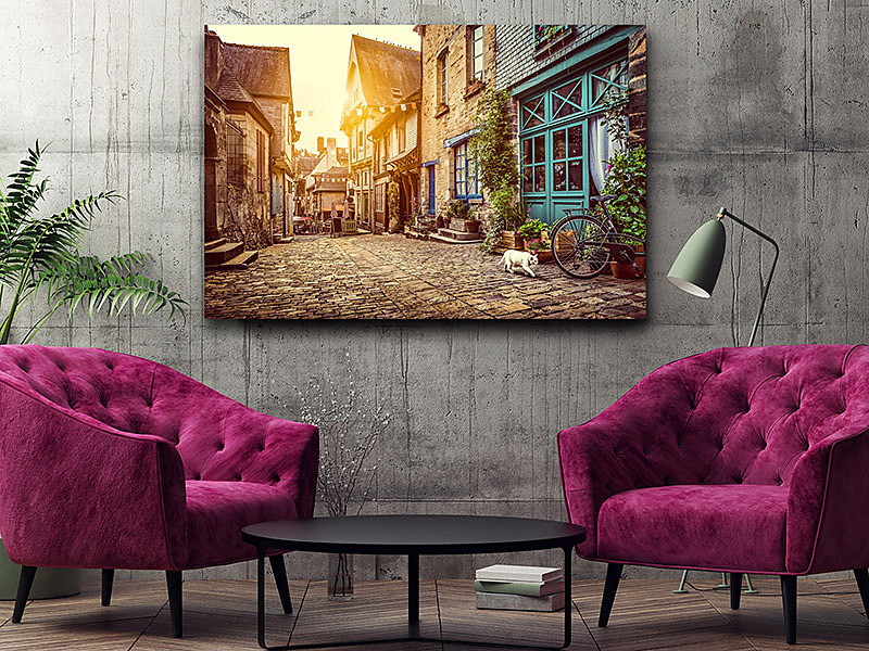 Obraz na stenu Stará ulica pri východe slnka, street ulička