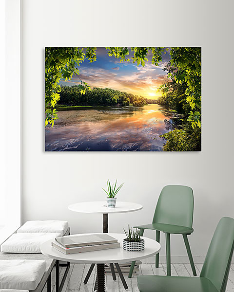 obraz na stenu Reflection of sunset in river ( landscape rieka slnko stromy príroda )