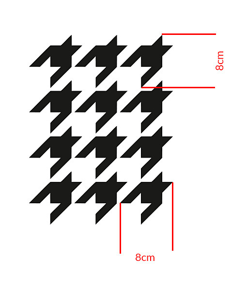 Šablóna na maľovanie vzor Houndstooth. Poslúži na renováciu nábytku, kresla, stola. Je to výborný materiál na kreatívnu tvorbu - namaľujete ornamenty na drevo, sklo, plast, textil, keramiku aj oblečenie. Svojpomocne pomocou vysokokvalitnej plastovej šablóny vrátite starému nábytku a doplnkom nový a moderný akcent. DIY kolekcia šablón DECODIZAJN CRAFT - riešenie na výzdobu stien, podláh, kachličiek, a všetkých doplnkov, ktoré nás obklopojú. Popustite uzdu svojej fantázii - vzory striedajte, kombinujte farby, buďte kreatívny a vytvorte si originálne a jedinečné dekorácie.