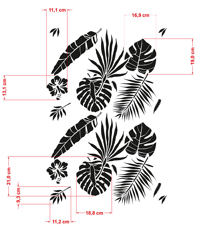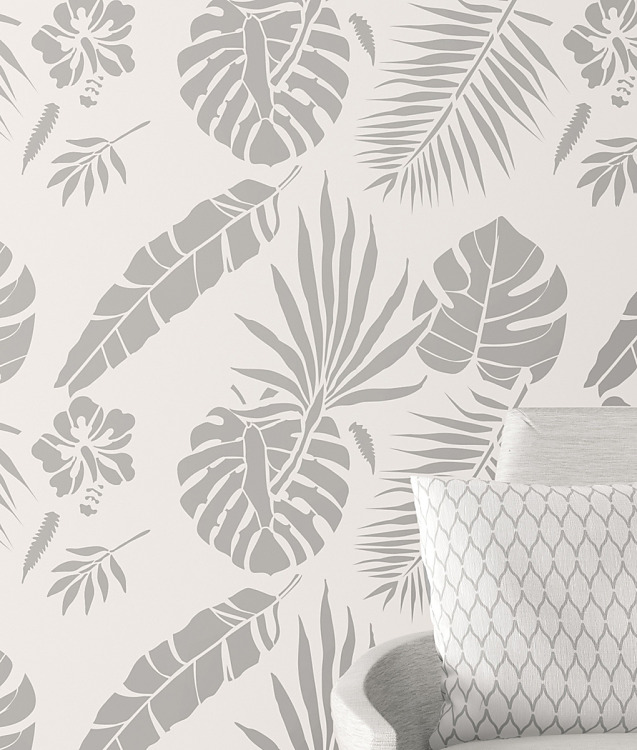Šablóna na maľovanie Listy Tropicana. Vytvorte si neopakovateľnú atmosféru v interiéri. Najnovšie trendy v interiérovom dizajne vám prináša aj naša kolekcia s dekoračnými šablónami. Vďaka viacnásobnému použitiu maliarskej šablóny, jednoducho odekorujete moderným vzorom stenu, nábytok, skrine, poličky, odkladacie boxy.