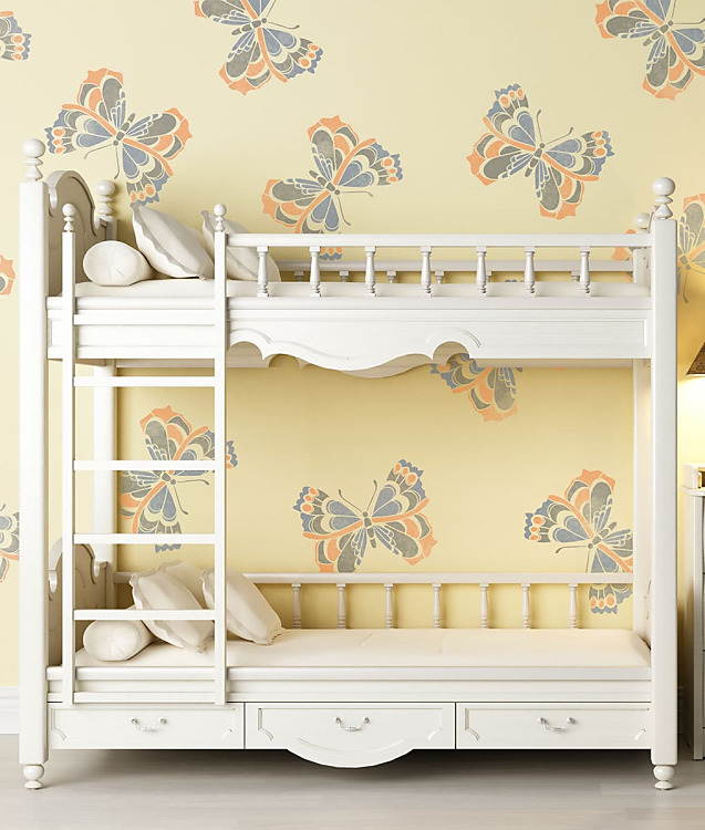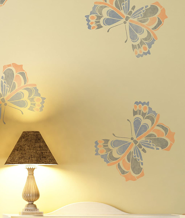 S maliarskou šablónou Motýľ - Butterfly si namaľujete krásne motýle na stenu, nábytok a iné povrchy. Vzor obmieňajte farbami a vytvorte farebný a moderný dekor na stene. Vďaka viacnásobnému použitiu šablóny jednoducho odekorujete listami aj nábytok, skrine, poličky, odkladacie boxy.