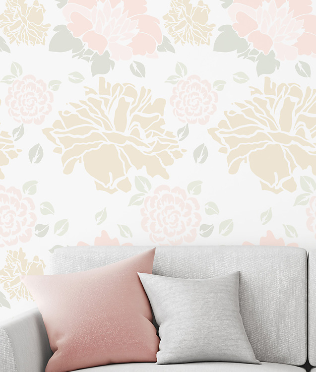 Namaľujte si kvetinovú stenu! Netreba vám tapetu, stačí jedna šablóna na dosiahnutie tapetového efektu. Kvety vnesú romantickú atmosféru do interiéru zariadenom v v provesnálskom a vidieckom štýle. Vďaka viacnásobnému použitiu levanduľovej šablóny namaľujete krásne vzory v dievčenskej izbe, v predsieni, v obývačke, v spálni. Farby na vzore môžete navzájom kombinovať a vytvoríte tým zaujímavý dekor.