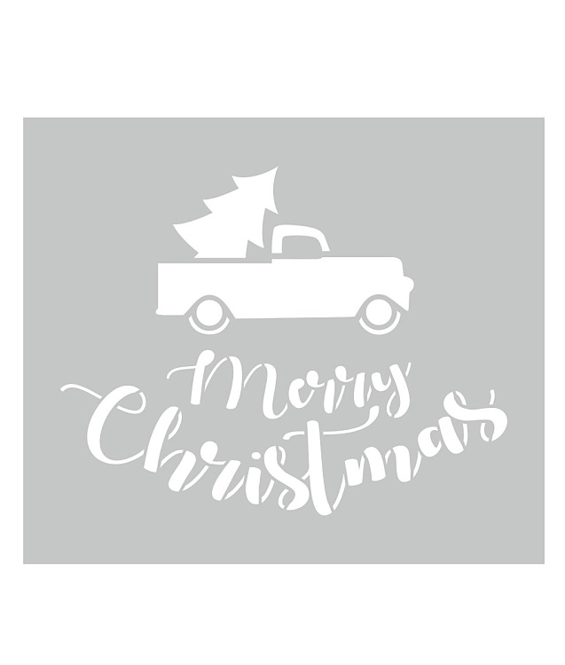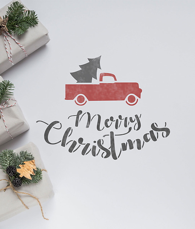 Namaľujte si atutíčko so stromčekom na rôzne povrchy. Navyše sa na šablóne nachádza aj nápis Merry Christmas.