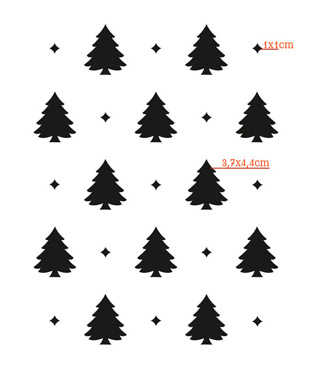 Šablóna na maľovanie Vianočné stromčeky. Pri príležitosti Vianoc, si môžete vytvoriť pekné maľované dekorácie - či už na stene, alebo na oknách s umelým snehom. DIY kolekcia šablón DECODIZAJN CRAFT - riešenie na výzdobu stien, podláh, kachličiek, a všetkých doplnkov, ktoré nás obklopojú. Popustite uzdu svojej fantázii - vzory striedajte, kombinujte farby, buďte kreatívny a vytvorte si originálne a jedinečné dekorácie.