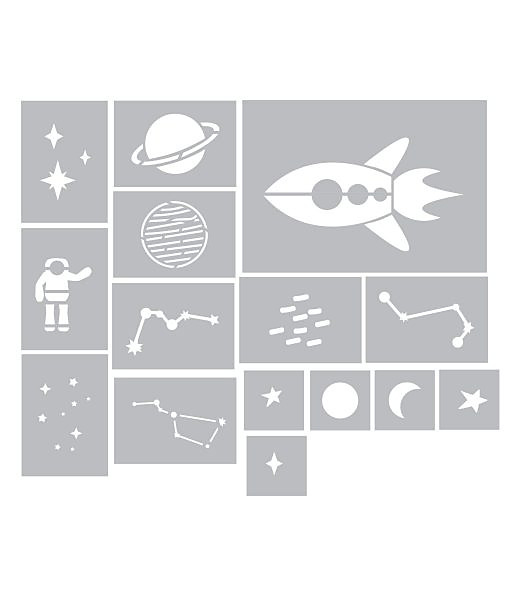 Sada šablón do detskej izby Vesmír - 15kusov .Namaľujete na stenu a nábytok krásne detské kompozície . Šablóny na kreatívnu tvorbu majú všestranné využitie. Vďaka rozmanitosti ich využijete takmer kdekoľvek - na steny, nábytok, drevo, textílie, keramiku, obkladačky. Kolekcia šablón DECODIZAJN - moderné vzory, ornamenty, tapetové motívy a bordúry.